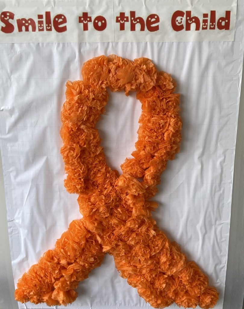 先月11月は、児童虐待防止月間でした。『オレンジリボン』は子供たちが明るい未来を望んで選んだ、オレンジ色でみんなの笑顔が広がっていくように願いが込められています。