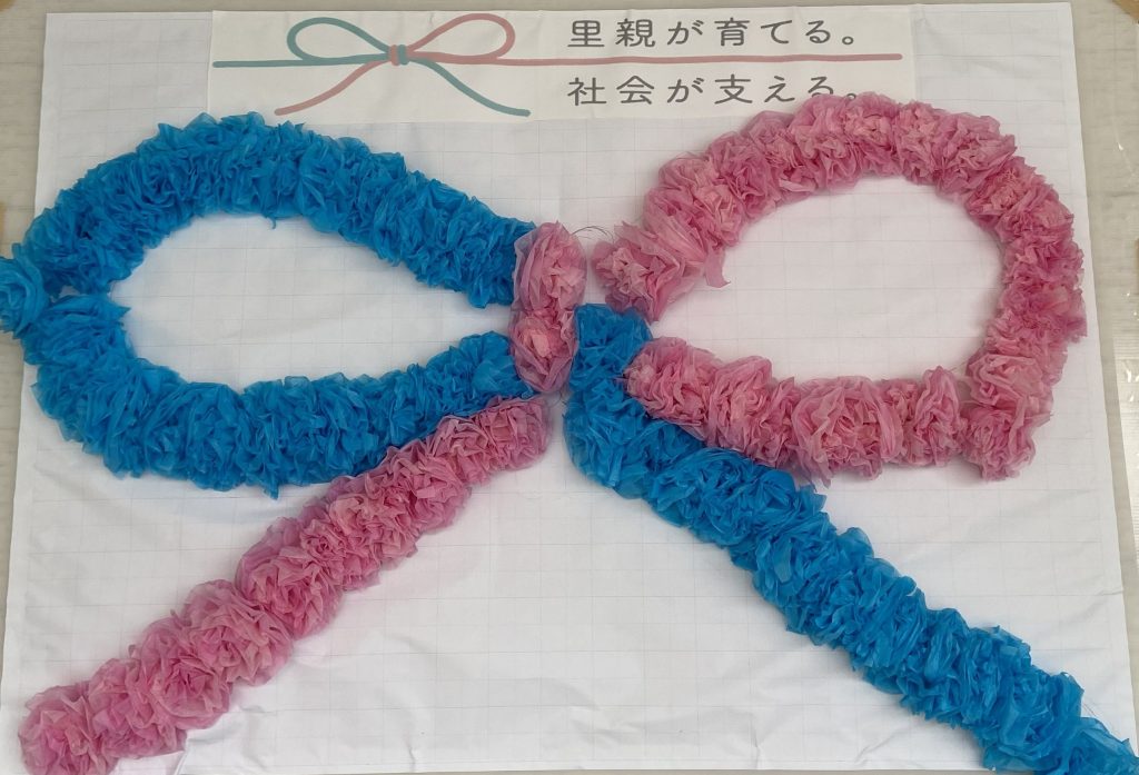 先々月10月は、さまざまな理由で家族と離れて過ごす子どもたちを見守り育てる里親さんについて広く知ってもらおうという¨里親月間¨でした。 ピンクと水色のリボン『フォスタリングマーク』は、里親さんと子どもたちの心のつながりや絆を表しています。