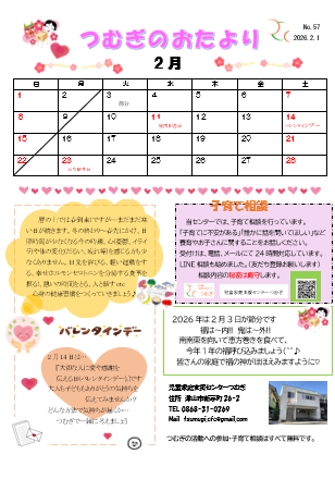 2月、街がバレンタインの華やかさに包まれる季節になりました。この行事は、大切な人へ想いを伝える日でもあります。日々、お子さんに寄り添い、一番近くでその葛藤や歩みを見守り続けていらっしゃる保護者の皆さまへ、私たちからも心からの敬意と感謝を申し上げます。目に見える変化はゆっくりかもしれませんが、皆様が注いでいる愛情は、必ずお子さんの心の根っこを育てています。つむぎで一緒に「ありがとう」を伝える方法を考えてみませんか。